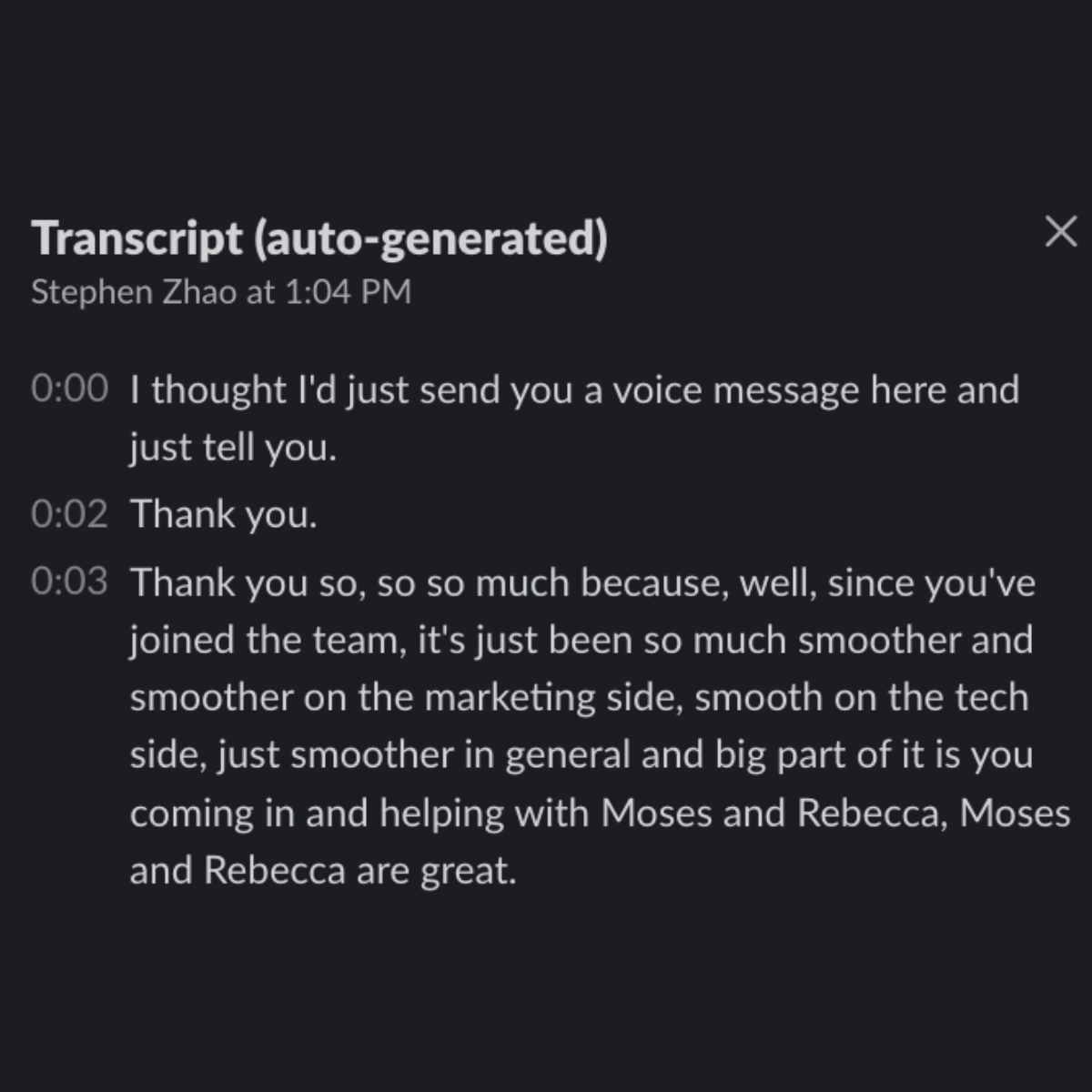 "I really appreciate how much ownership you're taking and the thought you're putting into tightening systems and follow-through. It's clear you care about doing this well."